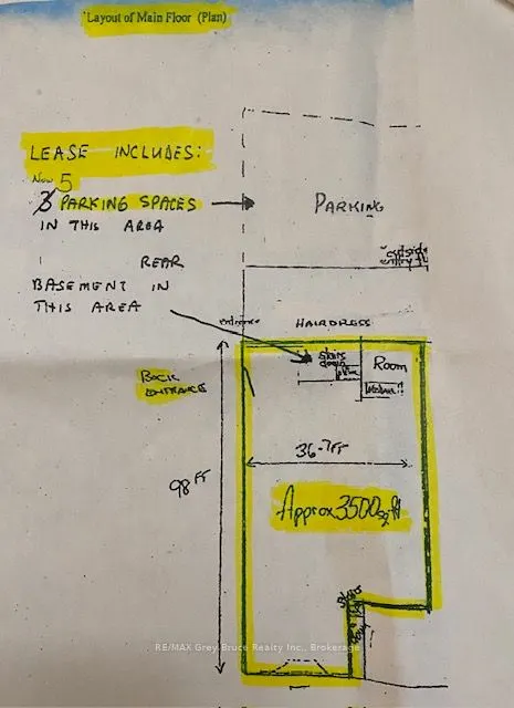 Immediate!! Unique rental space. Main Street directly beside city hall. Entrance on 2nd Avenue plus side entrance from parkette/walkway between city hall and this building. High visibility. 3500 sq ft with open areas and private rooms for offices and consultations. . Kitchenette. Two -two piece ...bathrooms (one handicapped) on main floor. Plus, basement sink and toilet. Open -accessible. Historically a pharmacy, wool shop and lately the Community Living Centre for educating, care and client entertaining - used by a multitude of staff and numerous clients.Gas hot water heating. Air conditioning heat pumps. Available immediately. Five parking spaces. Water and gas included. Tenant pays hydro and municipal taxes (taxes approx $525/mo)
